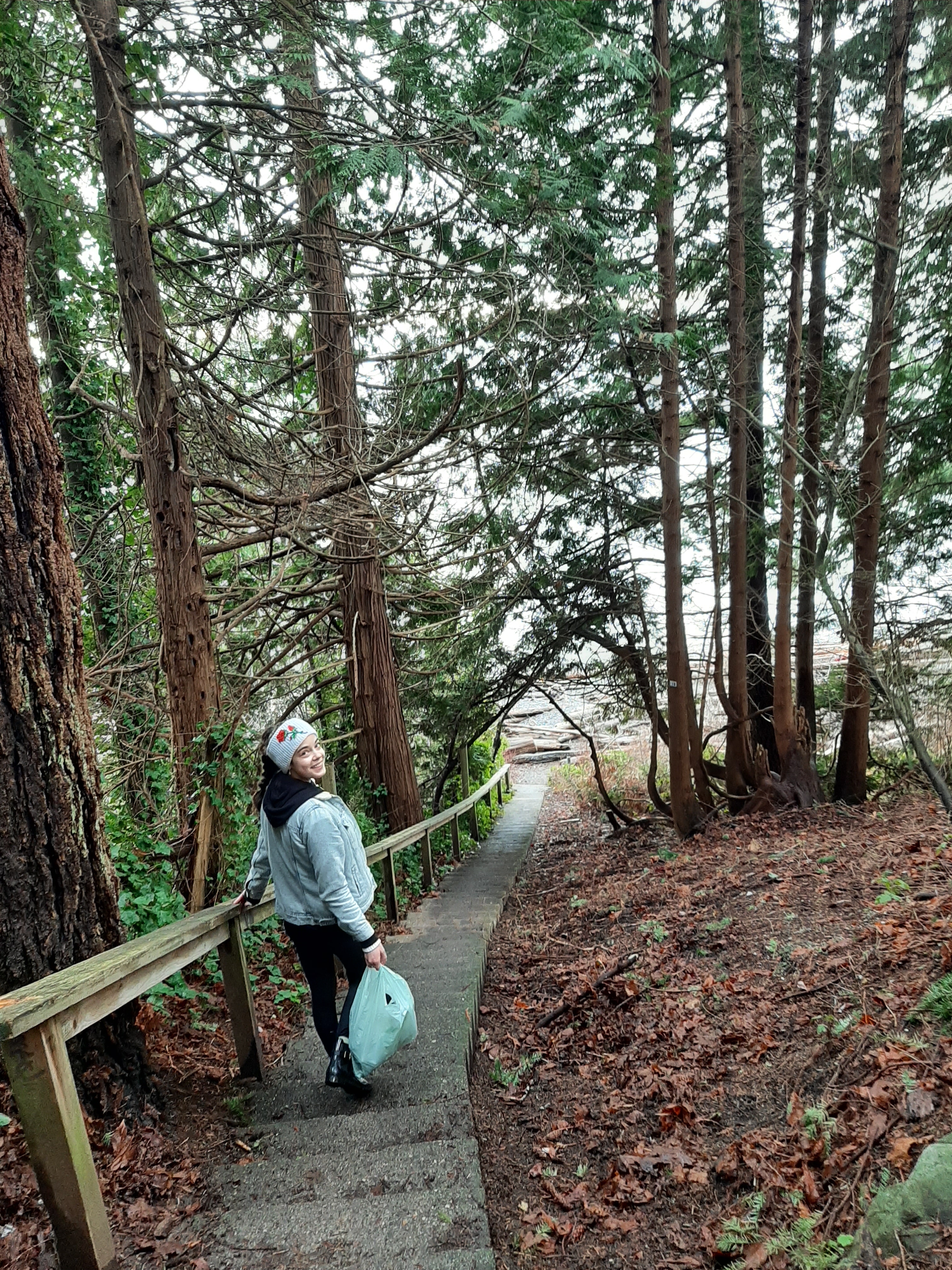 There is not a lot of room for parking for this beach, but somehow there is usually a spot available! Once you have parked on Gower Point Rd, you take a short downhill walk onto a forested stairwell that leads you to the beach itself.