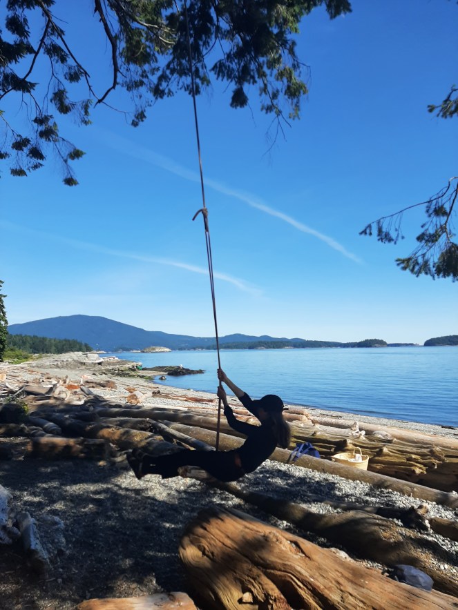 This beach is one of my personal favorites out of any I have visited on the Sunshine Coast. It is a pebble beach that has driftwood and rock formations to explore as well as a rope swing which adds an element of fun to the mix! It boasts a beautiful view across the straight of Georgia over to Vancouver Island, and is easy to find despite its elusive name.