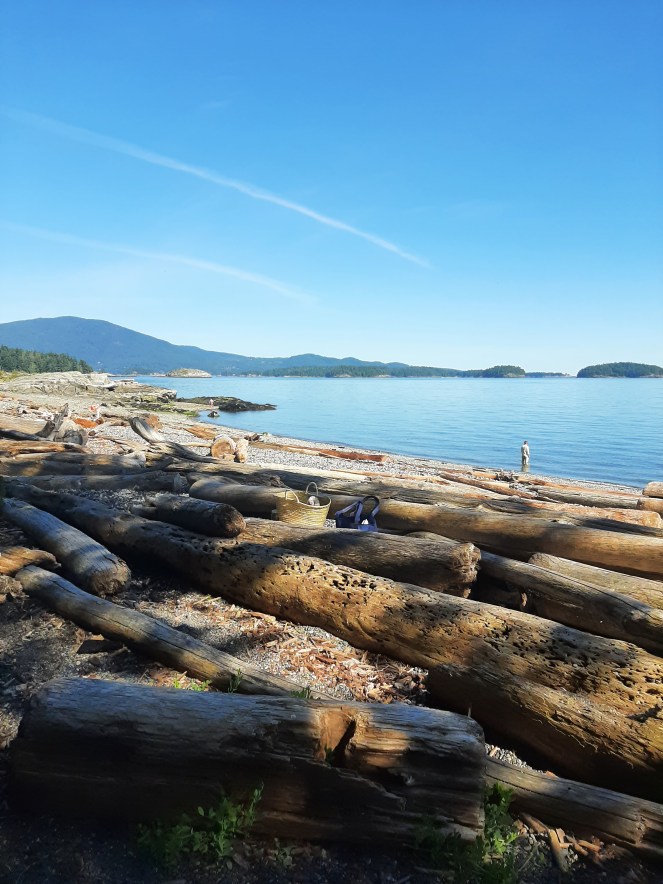 We were lucky enough to visit our beloved spot again this past June with a new found friend and neighbour who taught us about foraging. She encouraged us to pick salmon berries and huckleberries wherever we could find them and even convinced us to try some flower petals she had gathered.