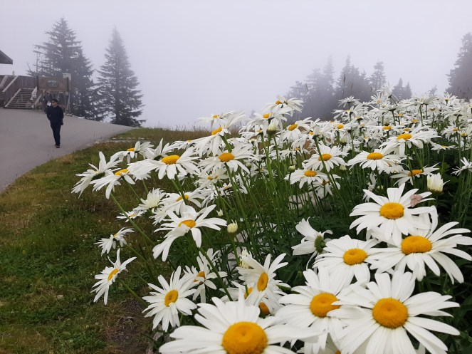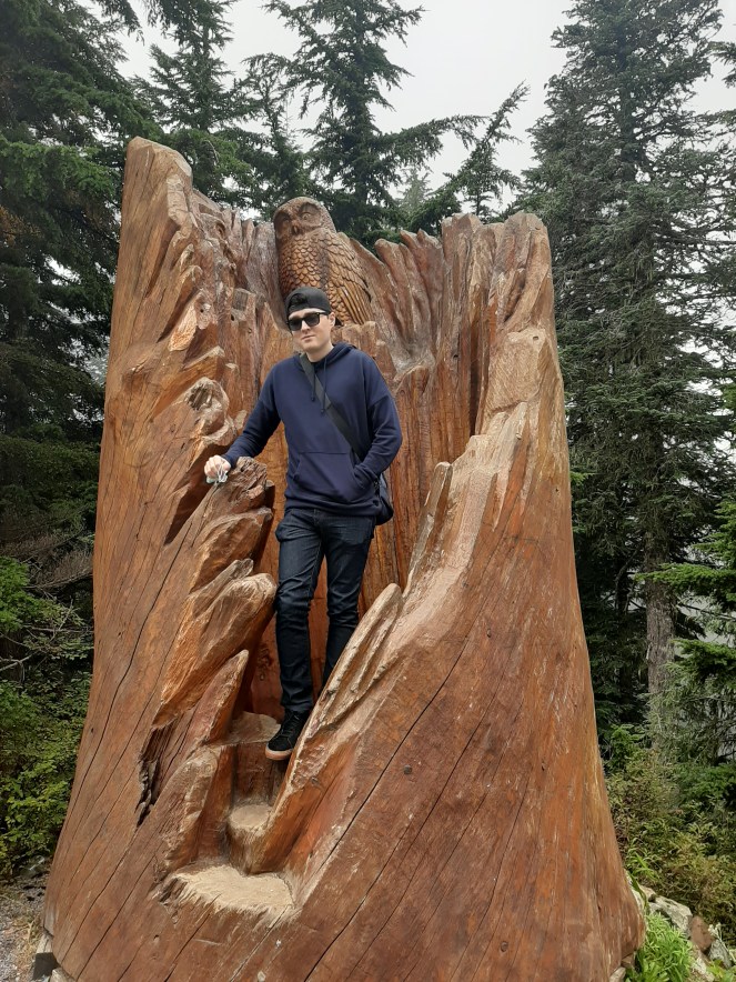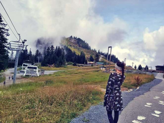 There are lots of spots to sit, rest and take in the view of BCs most beloved city, Vancouver while you visit this mountain retreat. The paths are wide and there are wildflowers, trees, and carved wooden statues that add to the dreamy atmosphere.