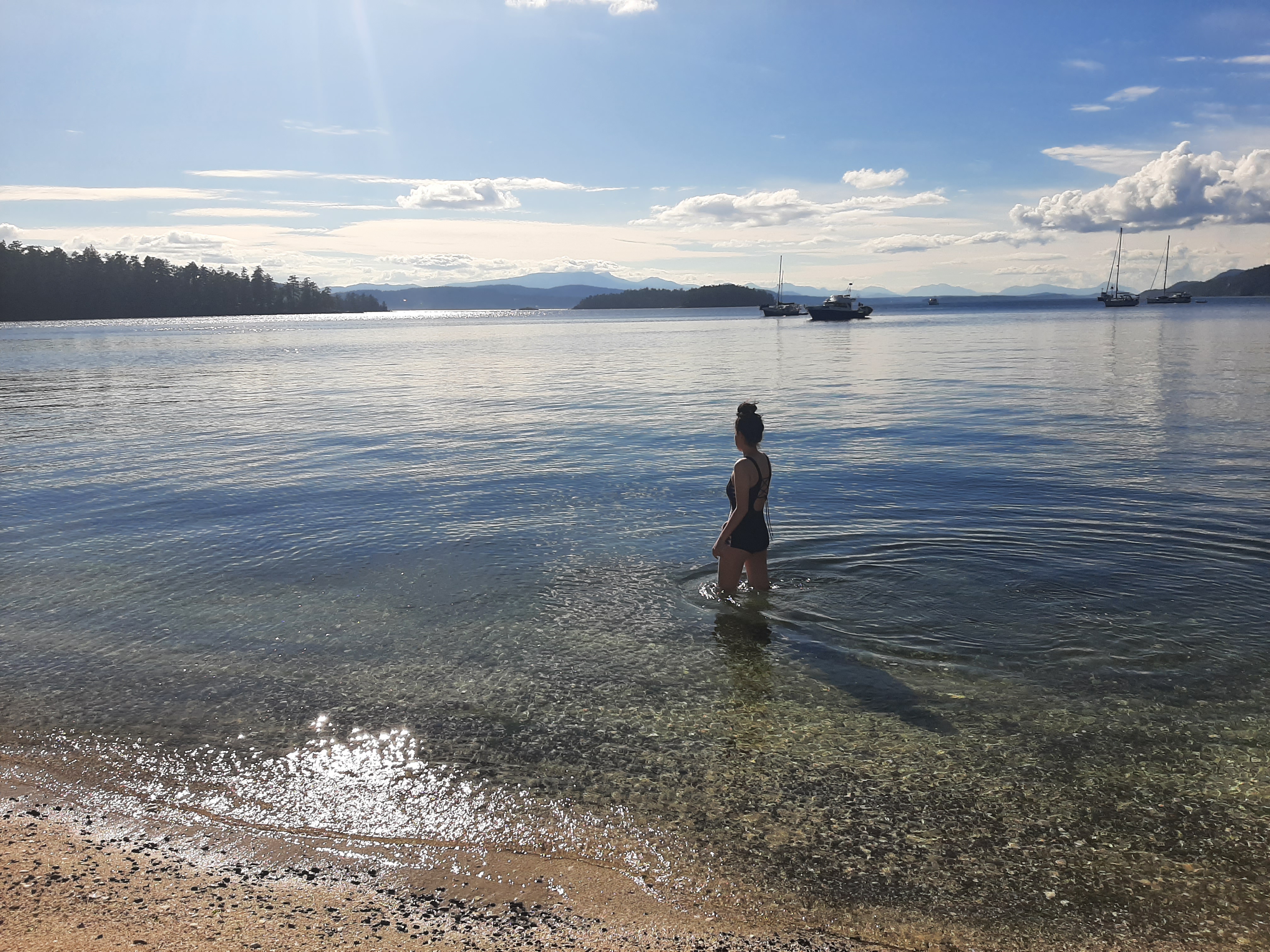 The water is on the blue-er, more clear side which also means it’s freezing but oh so beautiful. You’ll see sailboats peppered throughout and white shells in the place of sand. One of my favourite parts of any gulf island or place in BC for that matter, is the stunning forest trails you witness while exploring them. This provincial park is no exception, especially when the sun filters through the layers of leaves and branches, *swoon.