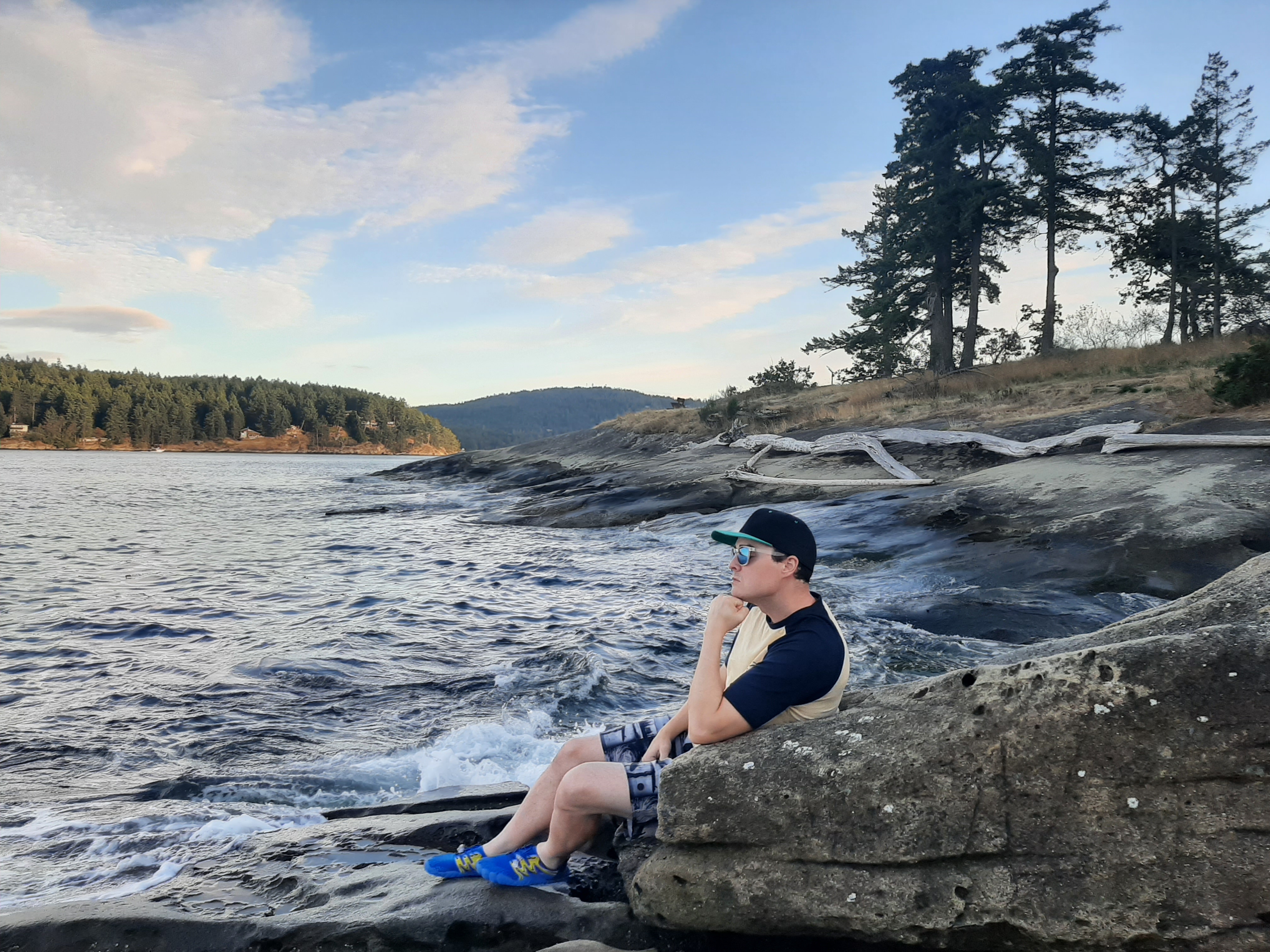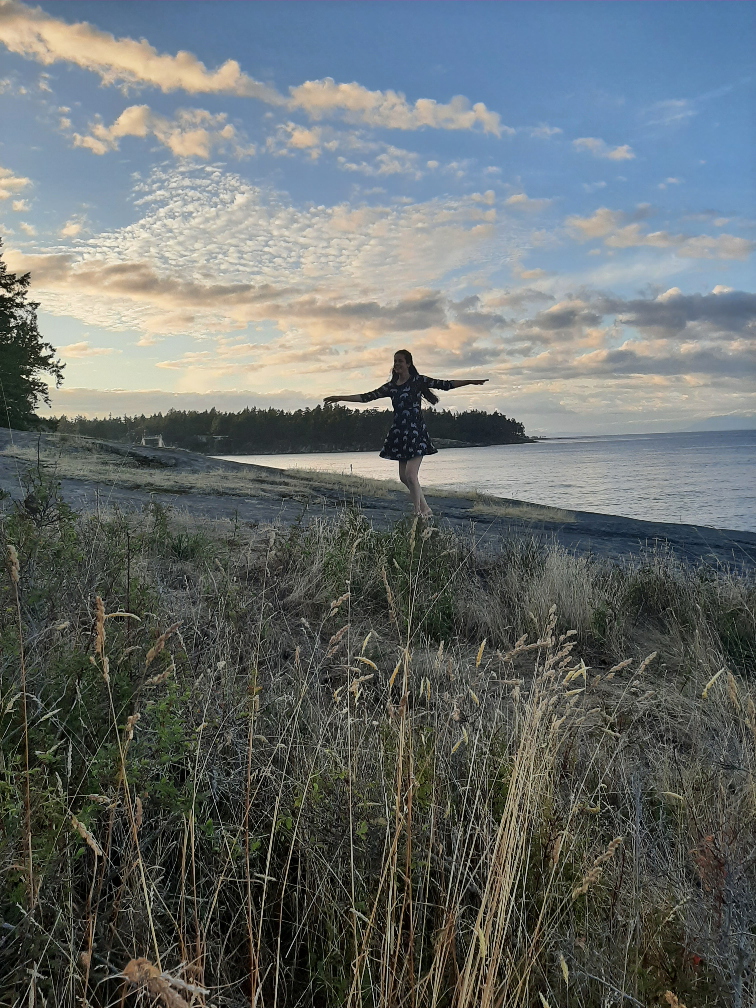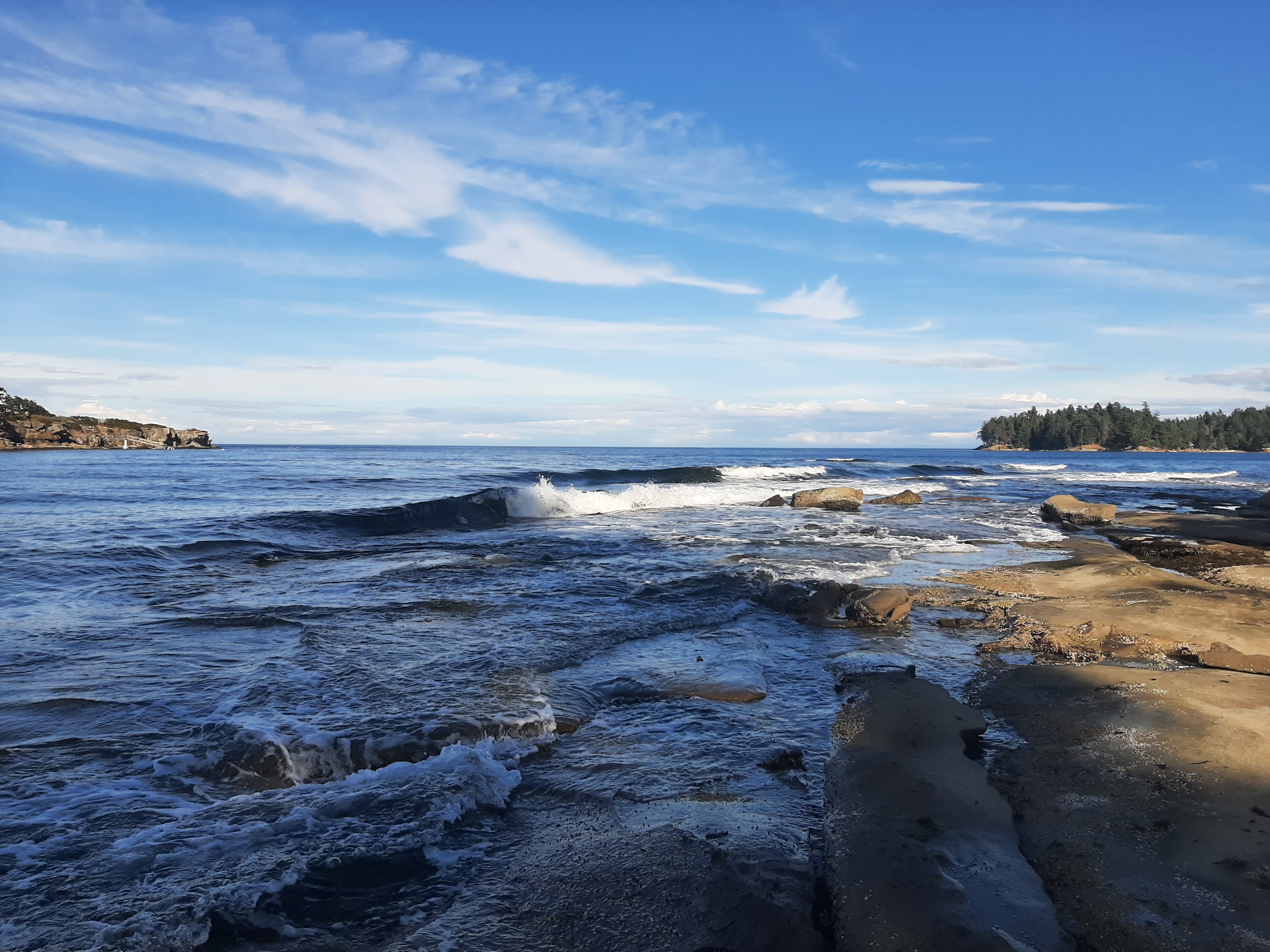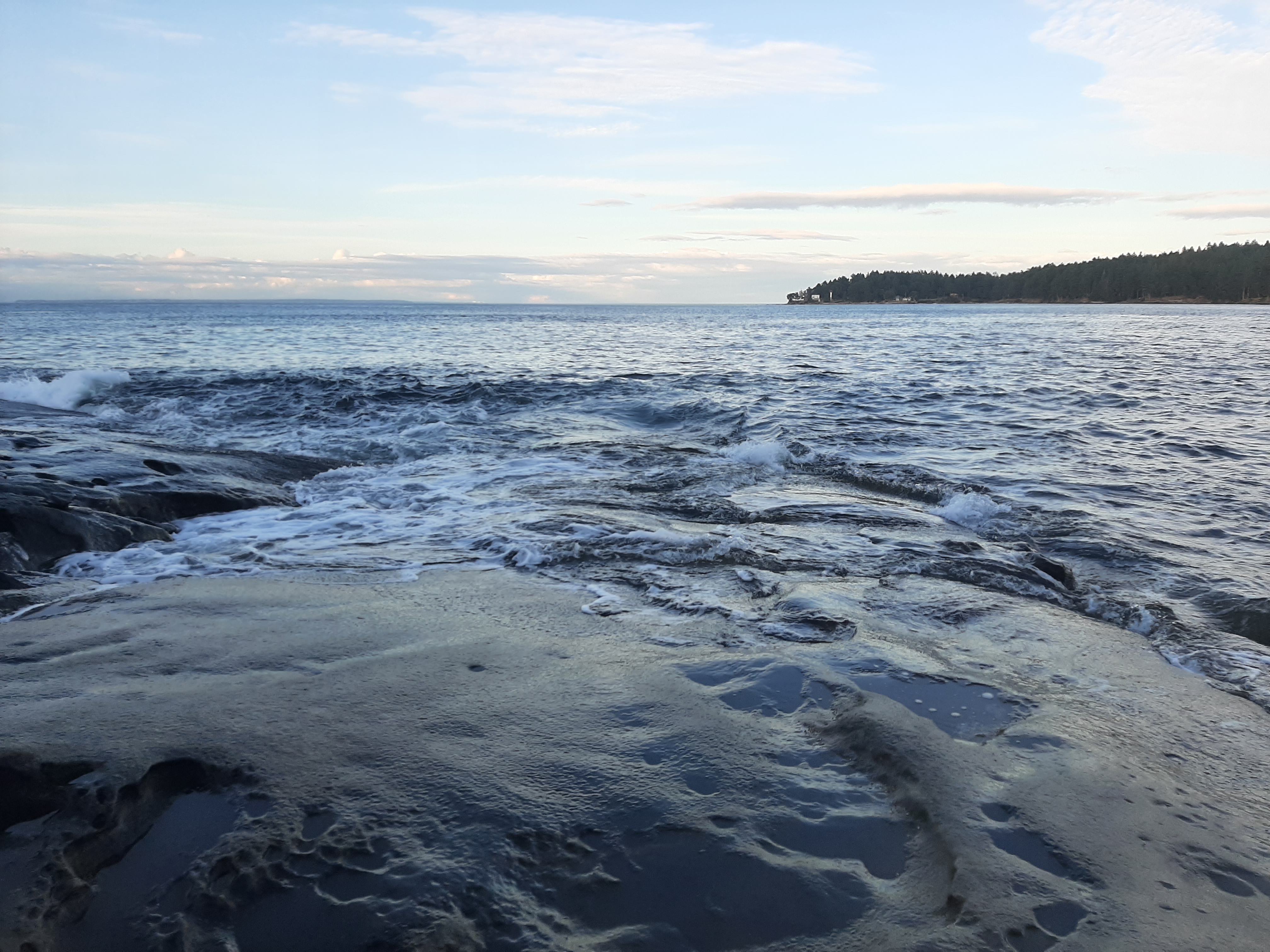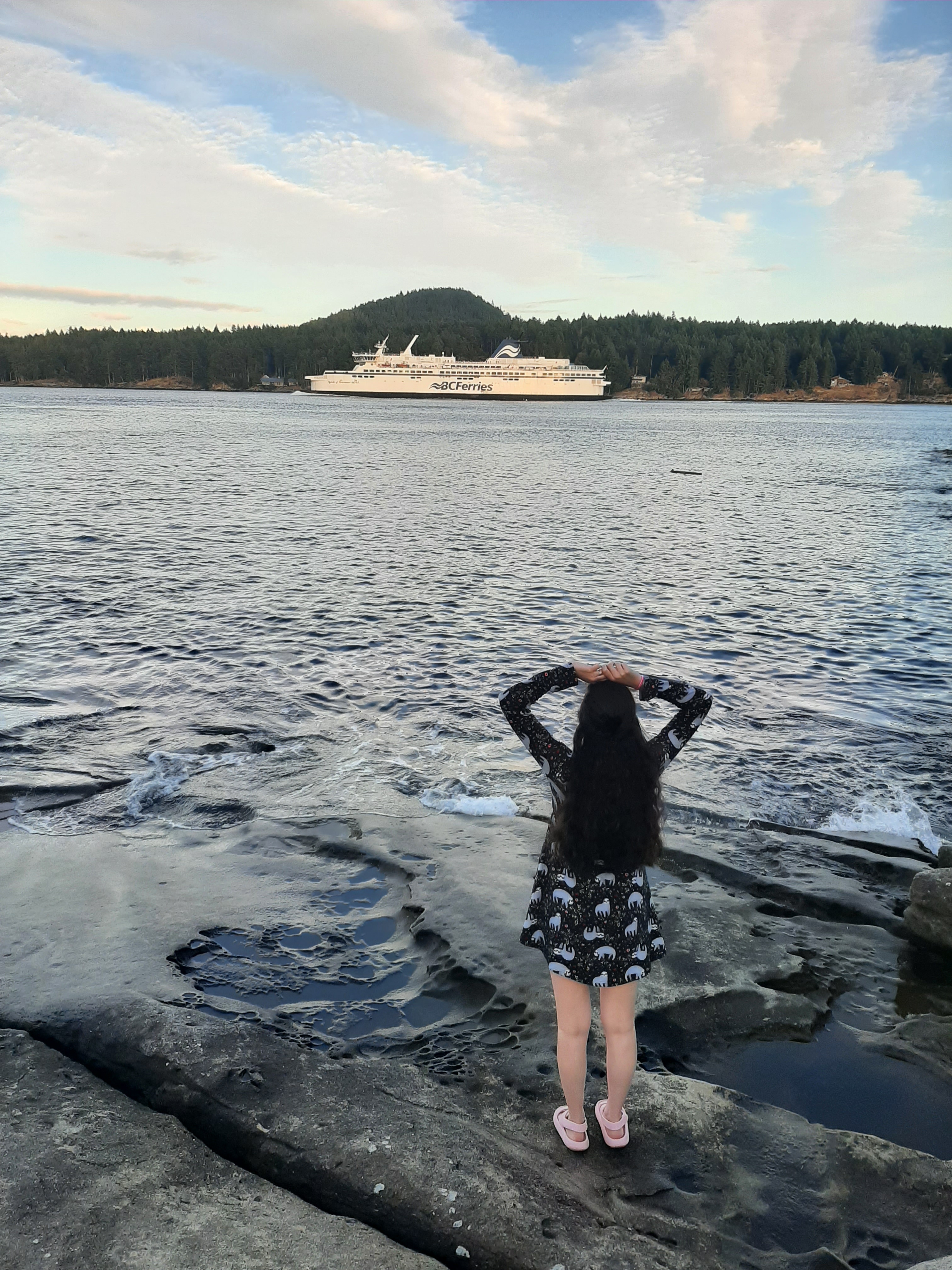 While exploring Morning Beach on the east side of Galiano, you’ll be able to catch a glimpse of Vancouver from across the Strait of Georgia. This beach gets the most sun in the morning, hence it’s fitting name. The rock formations look as though at one point a giant must have carved moons into them with spoons of every size. The small hollows of the rocks that we happily walked across strike me as a wonder of nature.
