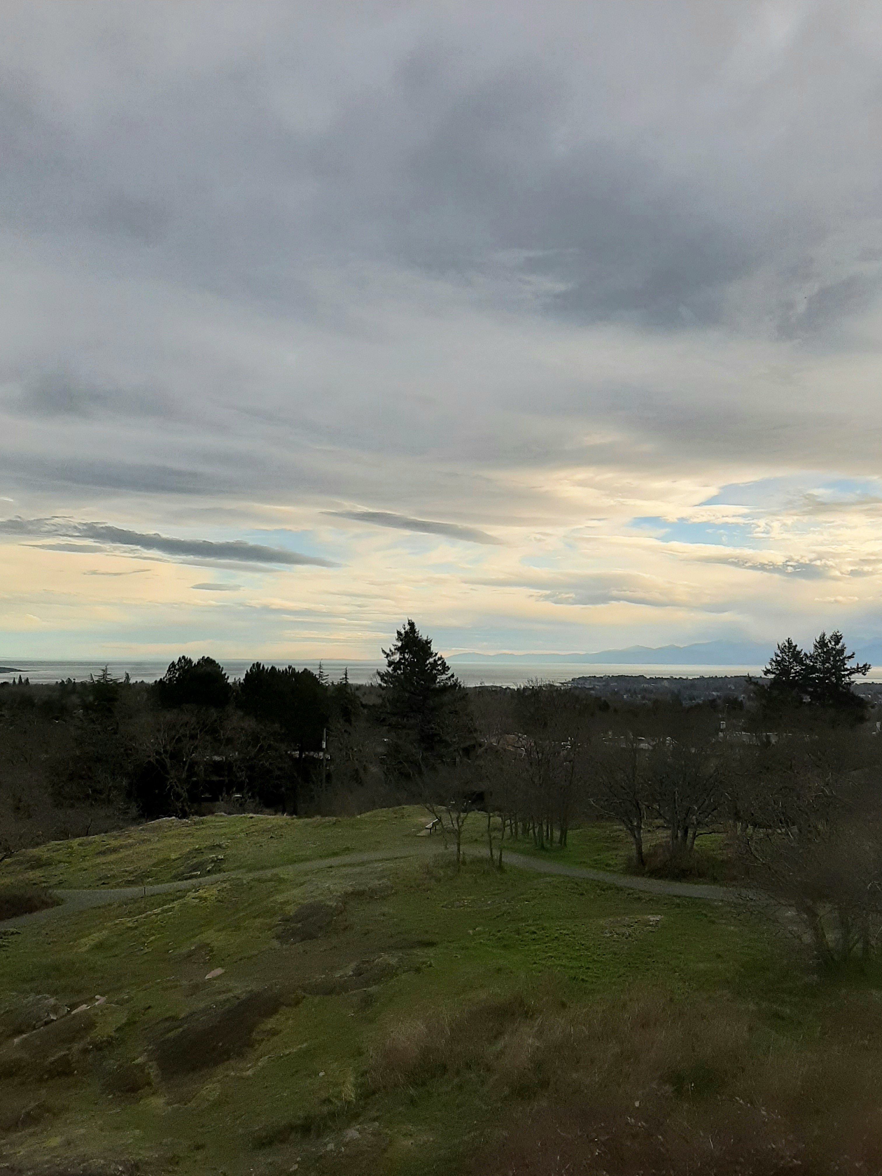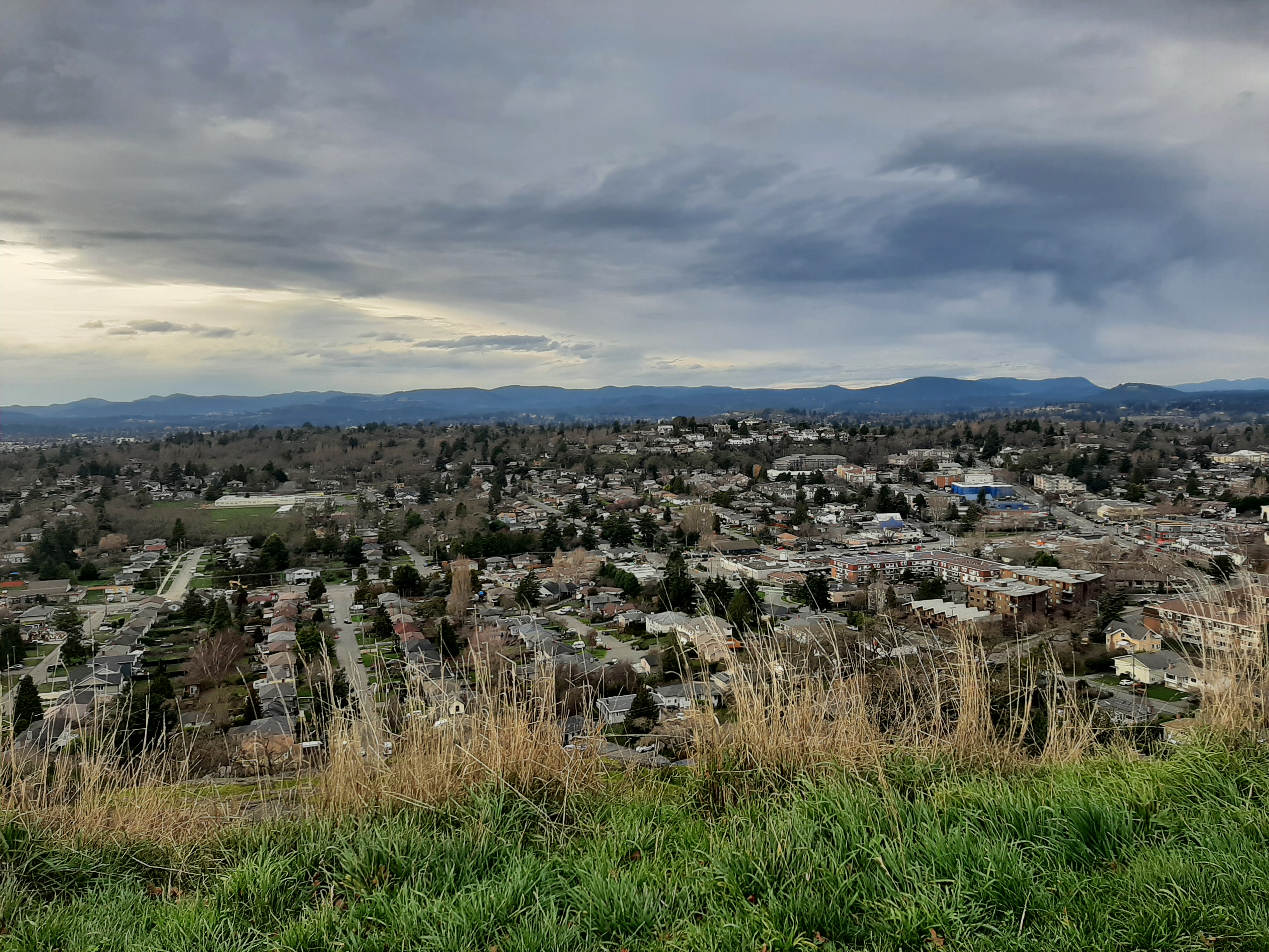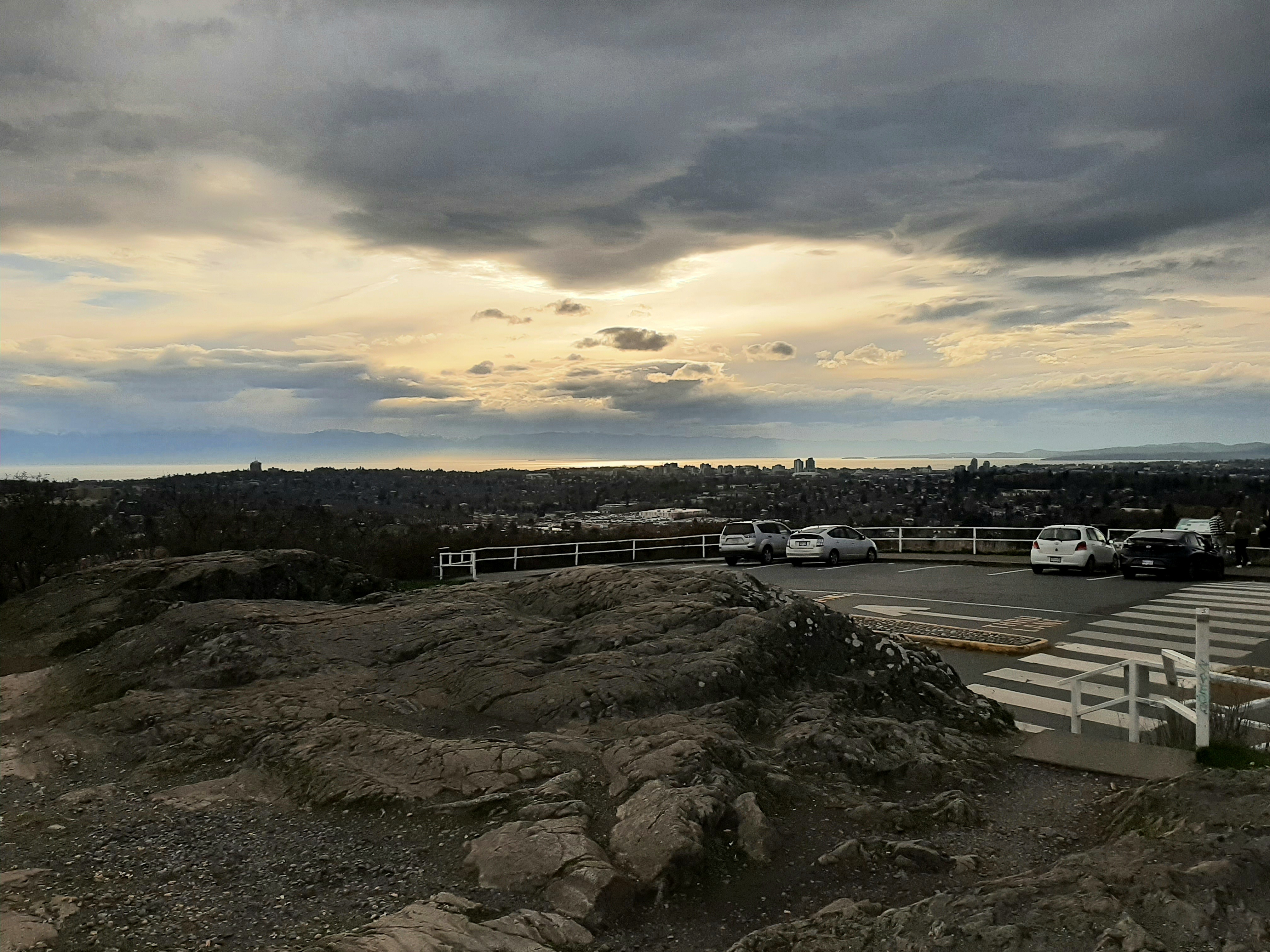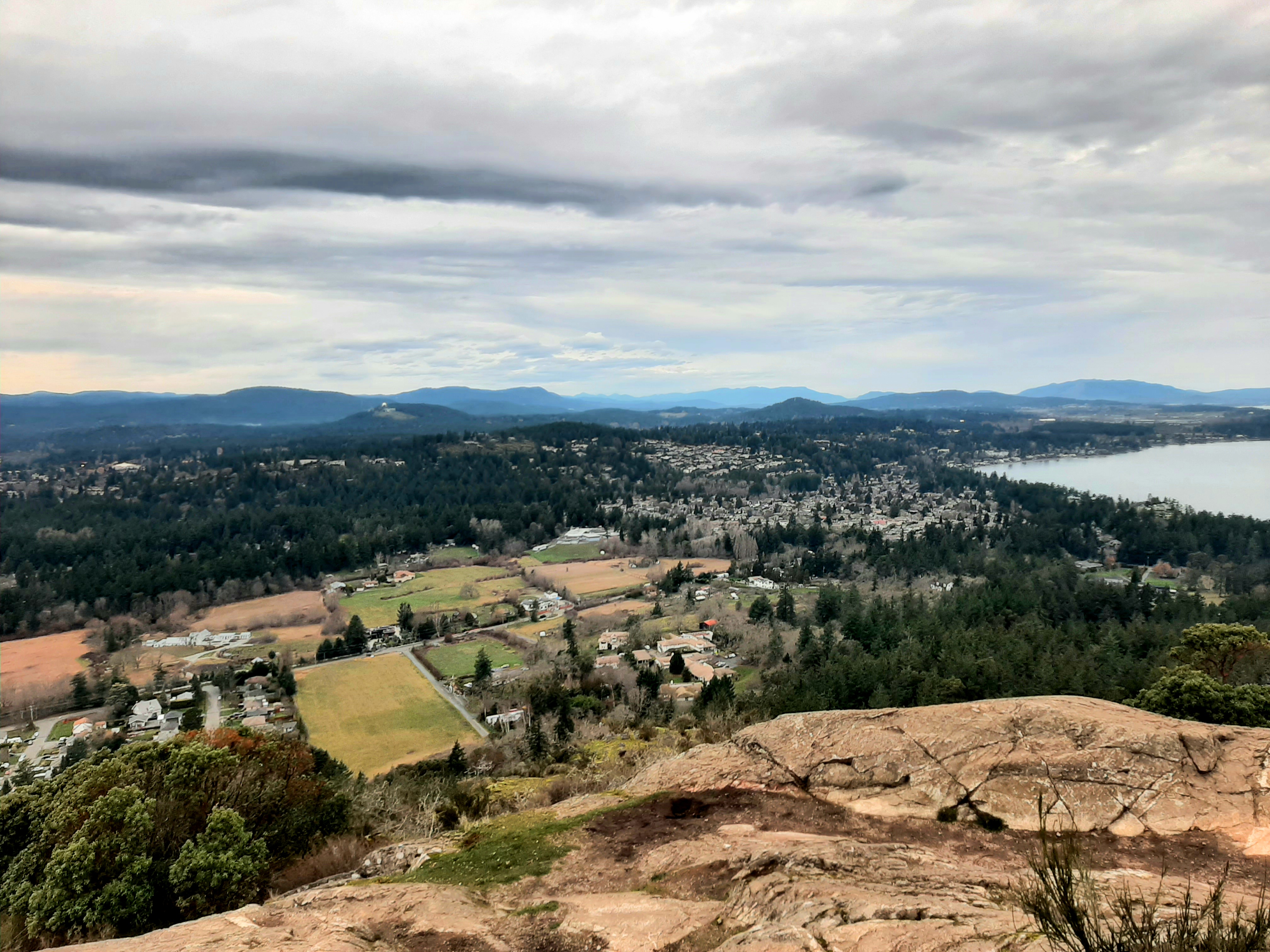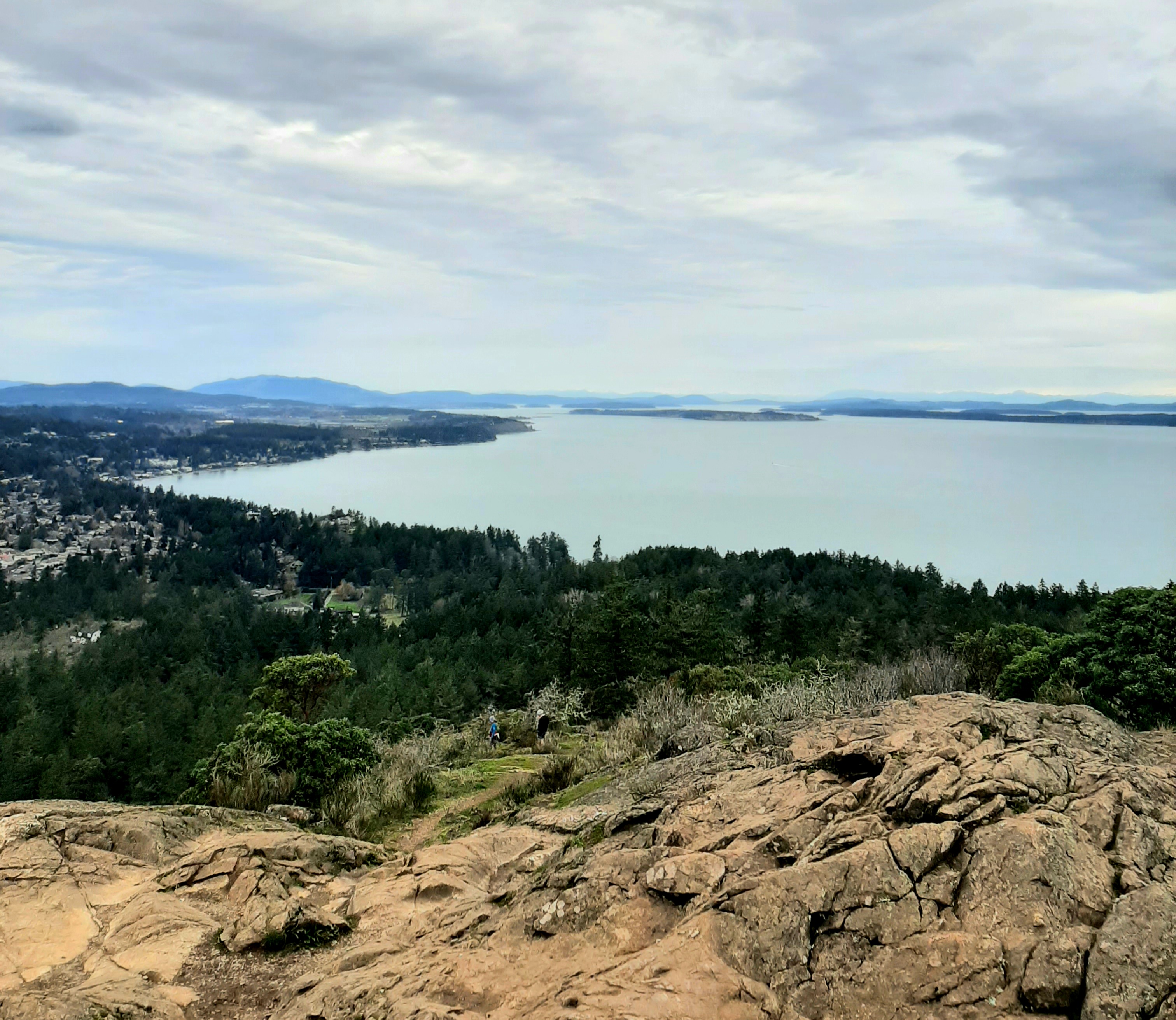 View from summit of Mt. Tolmie, looking toward downtown Victoria and the Salish Sea