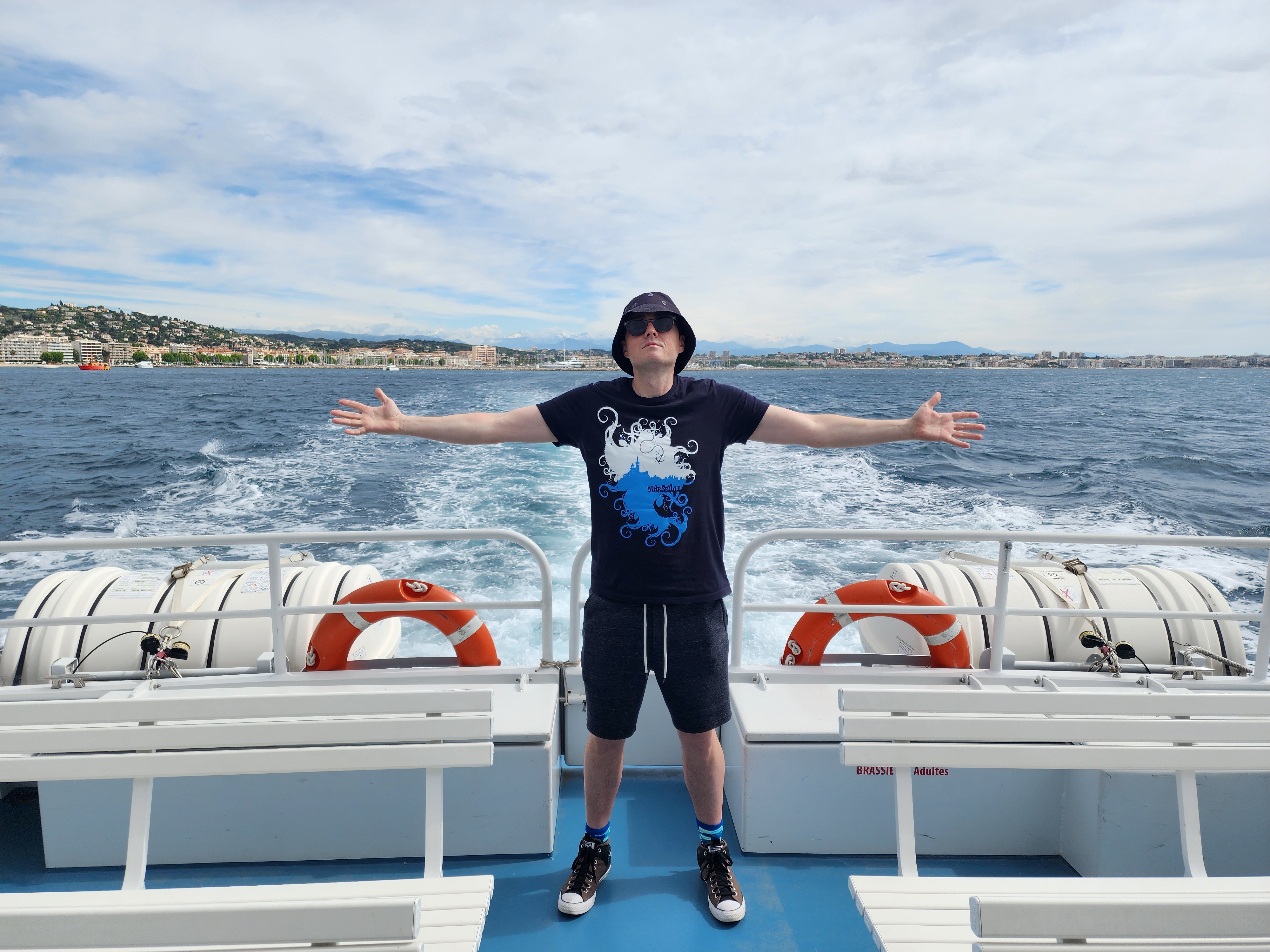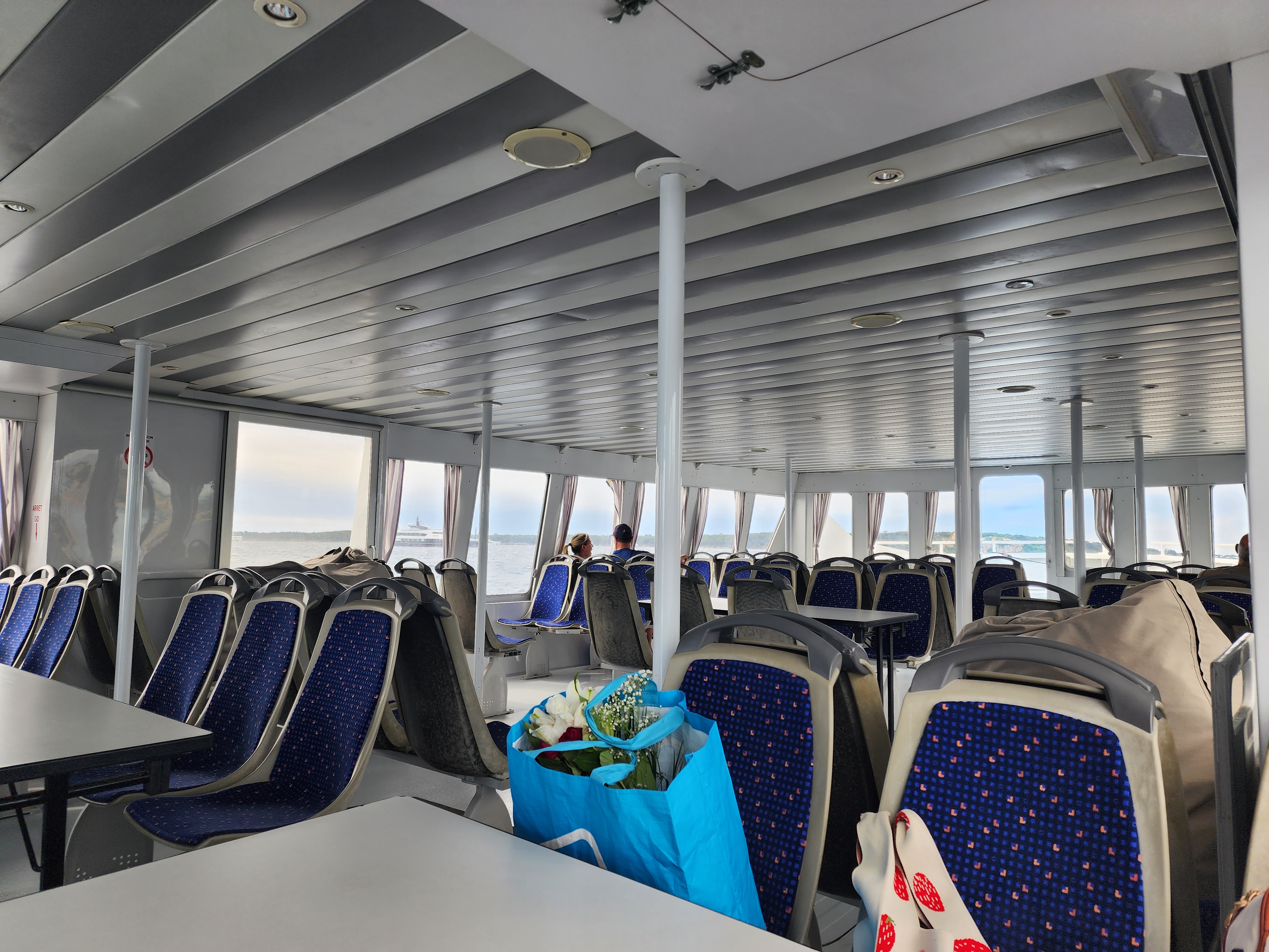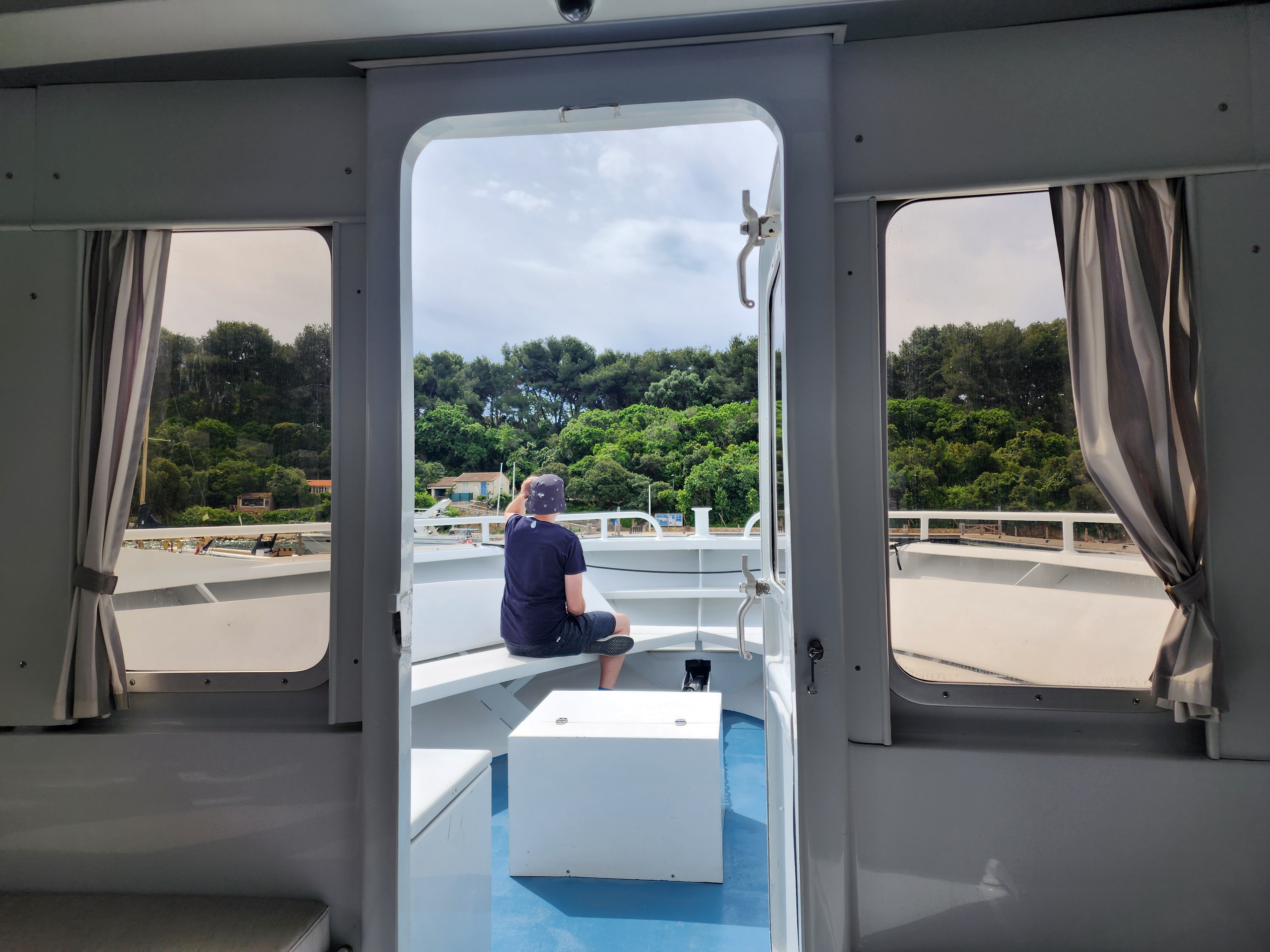 You can depart from Cannes itself as well as a few other ports along the coast. All the details such as price and schedules can be found here on the official ferry site. The only way to purchase your ticket is in person at a ticket booth as no online reservations are taken. The ferry itself is small though accommodating, including an upper and lower deck. The upper deck is completely exposed to the elements, while the lower deck is closed, and both have ample seating available making it a comfortable journey.